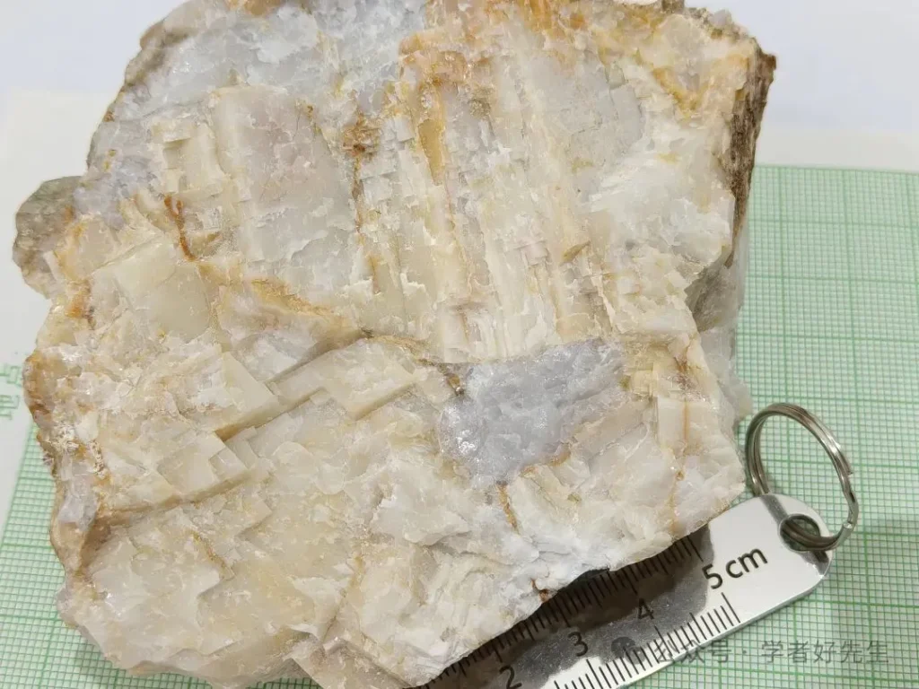 Calcita Es un mineral de roca carbonatada, compuesto principalmente de carbonato de calcio (CaCO₃). Su estructura cristalina suele ser romboédrica, y su sección transversal (clivaje) forma un cubo oblicuo, lo que facilita su identificación en la naturaleza.