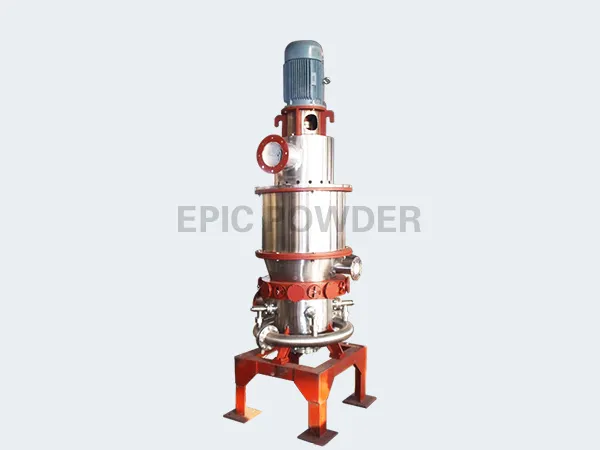 The disadvantage of the disc jet mill is that when grinding harder materials, the intense collision and friction with the material can damage the grinding chamber walls, causing some product contamination. Therefore, it is unsuitable for grinding high-hardness particles. Additionally, a significant portion of the energy in a flat jet mill is wasted; energy consumption increases exponentially as the product fineness decreases during grinding. Materials are typically only processed to around D50=1µm.