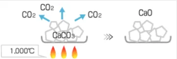 Kalksteen wordt verhit (verbrand) tot ongeveer 1000 °C, waardoor koolstofdioxide vrijkomt uit calciumcarbonaat, het hoofdbestanddeel van de kalk. Dit proces levert ongebluste kalk op. Ongebluste kalk wordt vaak gebruikt als droogmiddel voor onder andere snacks, vanwege de vochtabsorberende eigenschappen.