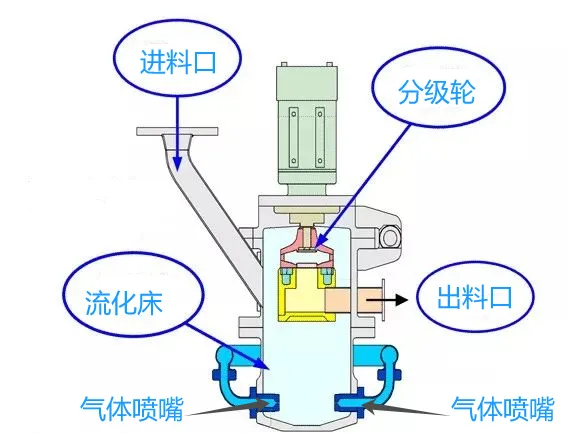 Akışkan yataklı hava akımı değirmeni şu anda hava akımı pulverizatörünün lider modelidir. Esas olarak karşı jet prensibini birleştirir. Bunu akışkan yatakta genişleyen gaz jeti akışıyla yapar. Kimyasalların, ilaçların, kozmetiklerin ve gelişmiş seramiklerin yapımında yaygındır. Ayrıca manyetik toz ve diğer malzemeler için de kullanılır. . Ekipman kırma alanına hava püskürtür. Çalışırken bunu birkaç ters nozül aracılığıyla yapar. Yüksek basınçlı hava akışı kırma odasındadır. Malzemelerin ezilmesini hızlandırır. Bu onların akışkan bir hal oluşturmasını sağlar. Daha sonra hızlı malzemeler çarpışır ve nozül kesişme noktasında sürtünür. Ezildiler. Hava akımı kırılmış ince malzemeleri yukarı doğru taşır. Onları sınıflandırma için ultra ince sınıflandırıcıya götürür. Siklon ayırıcı, gereksinimleri karşılayan ince malzemeleri toplar. İri malzemeler yerçekiminin etkisi altında kırma alanına geri çöker. Daha sonra kırma işlemi devam ediyor.